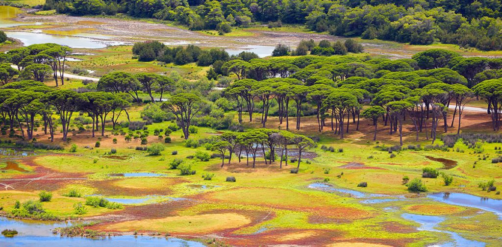 Forming an intricate ecosystem alongside the lagoons and Prokopou lake, the Strofilia Forest at Kalogria on the Gulf of Corinth is one of the largest in the Mediterranean. It spreads over 80 kilometres square or 20,000 acres. Cone, pine, myrtle, oak and other trees make up this forest which goes all the way to the coast. This is where the careta careta turtle lays its eggs, beside a natural fish farm. Numerous animal species roam the forest, which is a Ramsar protected area for birds as well.